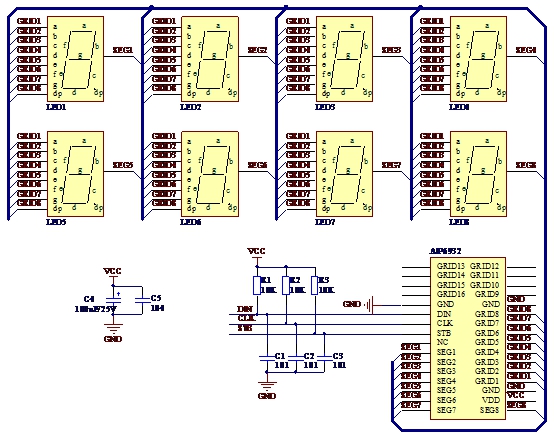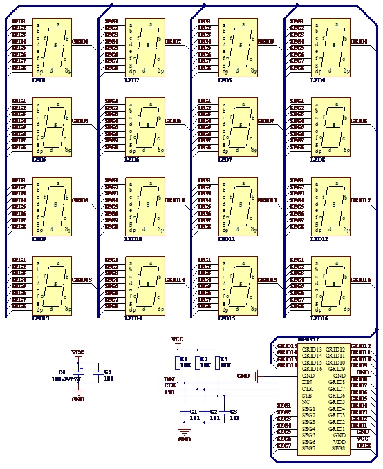 3线串口共阴极8段16位LED驱动控制专用电路