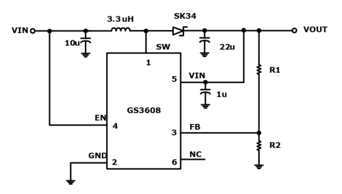 2A 高效率升压 DC/DC 电压调整器。GS3608是一款微小型、 高效率、 升压型 DC/DC 调整器。电路由电流模 PWM 控制环路,误差放大器,斜波补偿电路,比较器和功率开关等模块组成。该芯片可在较宽负载范围内高效稳定的工作, 内置一个 4A 的功率开关和软启动保护电路。高达 93%的转换效率能够高效的延长电池寿命。可以通过调整两个外加电阻来设定输出电压。